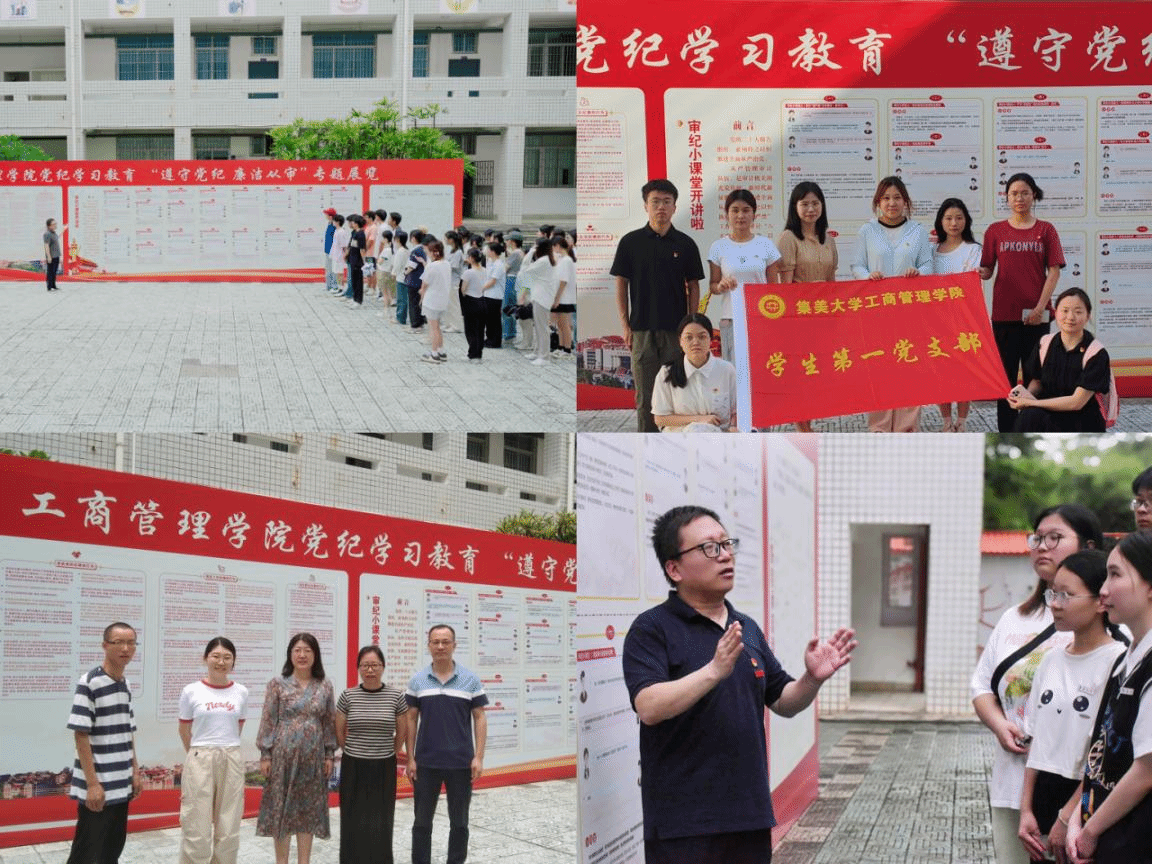 为深入推进党纪学习教育,强化党员的纪律意识和廉洁观念,近日,工商管理学院党委“遵守党纪,廉洁从审”党纪学习教育专题展览在集毅楼中庭开展,该展览由审计学教研室党支部策划发起。
