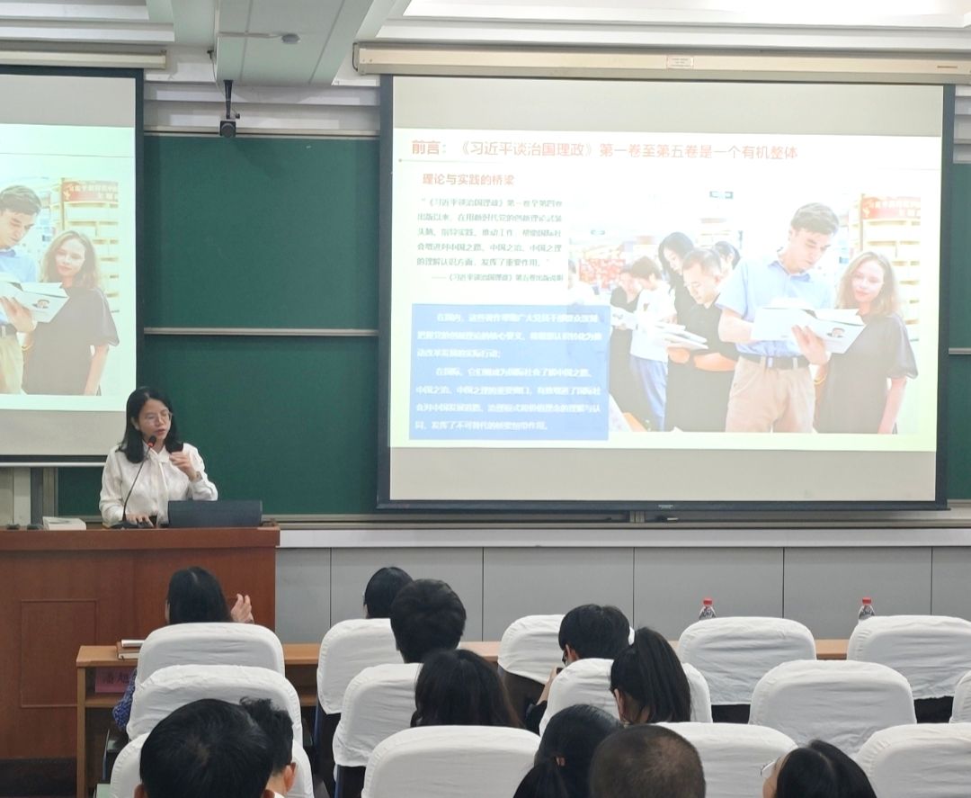 活动邀请马克思主义学院王玉珏教授作题为“引领强国建设、民族复兴新征程的科学行动指南”的专题宣讲,她围绕“提高认识,深刻领会重大意义”、“学懂弄通,准确把握核心要义”、“学思践悟,确保学习走深走实”三个方面深入阐释《习近平谈治国理政》第五卷的深刻内涵,强调要把《习近平谈治国理政》第五卷与前四卷作为一个整体进行贯通学习,全面认识习近平新时代中国特色社会主义思想形成发展过程,准确理解新时代党的理论创新的历史与现实逻辑。