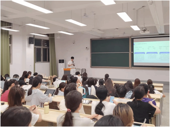张一然同学详强调要注重自己的真实想法,进而减少外界对自己的干扰;分享了有关考研的基本信息以及初试复试的复习指南,并建议学弟学妹“早规划、早行动”,强调心态的重要性,建议用行动去打败焦虑。吴丛宇同学从自身的备考经验入手,从跨学科考研的角度分享备考方式与时间安排。王雯彤同学讲解了有关出国留学的流程以及想要出国留学要做何准备,向同学们推荐了学习英语的小技巧与软件,为有意向出国留学的学子提供了有效帮助。