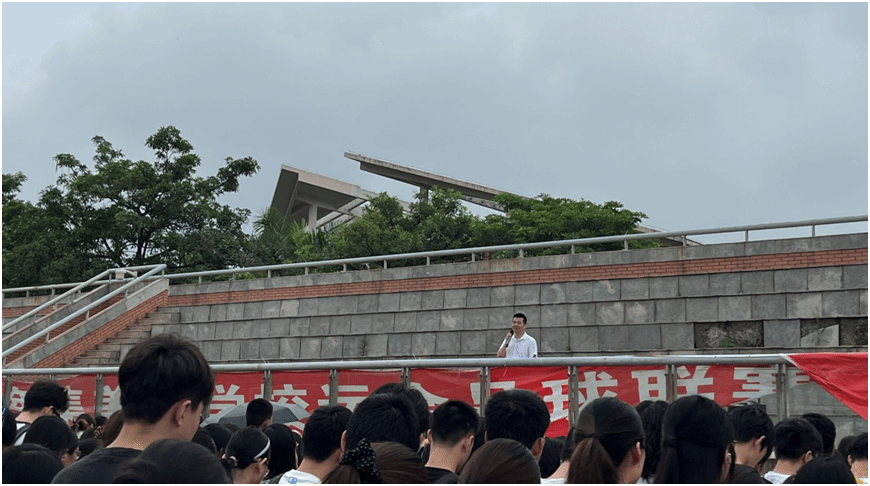 6月9日上午,工商管理学院在庄重文夫人体育场举行期末主题教育活动,院党委副书记董欣胜,辅导员和全体在校学生参加。