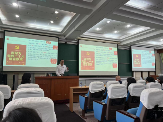 讲座中,肖仕平教授从“中华民族伟大复兴、中国式社会主义现代化、人类文明新形态”“新征程新基础:五年的工作和新时代十年的伟大变革”“新征程新要求:十二方面大政方针”等三个方面入手,以深厚的功底、宽广的视野、独到的见解,对党的二十大提出的新思想、新论断,作出的新部署、新要求,以理论阐述解读、历史背景分析、现实事例论证等方式进行了系统解读,为师生上了一堂丰富的理论大餐。