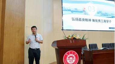 董欣胜副书记将集美大学的办学历史、特色建筑、办学目标等向新同学娓娓道来,帮助大家加深对学校的认知和了解。他同时向新生们详细介绍了工商管理学院的师资队伍、专业设置、教学设施、学生工作特别是学院特色比赛活动,帮助新生迅速融入大学生活。最后他着重介绍了校主陈嘉庚的光辉事迹和嘉庚精神的内涵,将嘉庚精神的种子埋藏在新同学心中。随后,张明亮老师向同学们介绍了学院各学生组织以及党团知识,并鼓励同学们积极参与健康有益的校园活动。
