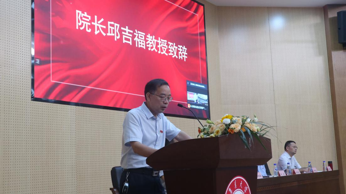 工商管理学院院长邱吉福教授发表讲话。他代表学院领导和全体师生员工对2022级新同学的到来表示热烈欢迎,并向新生介绍我院发展历史、师资力量、学科建设等情况。他向全体新生提出三点要求:一是志存高远,用理想照亮青春的底色,把个人理想追求融入国家发展中,在追逐人生理想过程中,为中华民族伟大复兴贡献青春力量;二是脚踏实地,用奋斗点燃青春的光芒,在追逐人生理想中,展现“工商学子”担当,增强新时代中国青年的志气、骨气、底气;三是赓续嘉庚精神,将家国情怀融入青春的记忆,赓续嘉庚精神,厚植家国情怀,将个人理想与中华民族伟大复兴相结合。