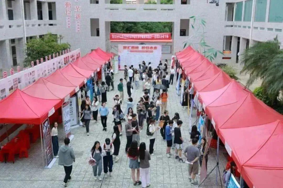活动以“线下双选会+线上直播就业”双模式呈现。在线下双选会上,既有龙头企业宣讲,也有优秀校友分享,他们从公司概况、企业优势、工作环境、企业文化、晋升机制、薪酬福利等多个方面详尽阐述毕业生关心的问题,全面分析行业现状,向毕业生多维度展示职业前景,帮助毕业生进一步明确自我定位和就业目标。线上直播则给未能前往现场的毕业生提供了在线选岗的机会,毕业生可以搜索查询企业及岗位的具体信息,并进行线上简历投递。