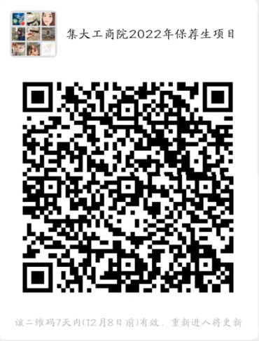 2、请有意参加项目的同学,加入“集大工商院2022年保荐生项目”微信群,届时也会有香港岭南大学史老师为大家提供咨询。