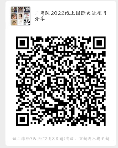请有意向的同学加入工商院2022线上国际交流项目分享群,有老师和参加过线上项目交流的学生为大家解答。