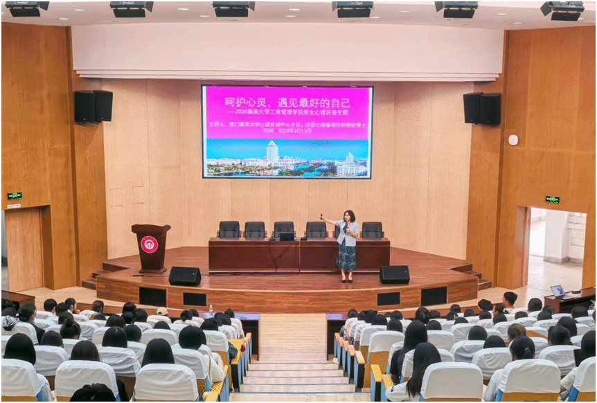 为进一步推进2024级新生心理健康教育工作,及时掌握学生的心理健康状况,增强学生心理健康意识,工商管理学院于10月9日下午在学院学术报告厅召开2024级新生心理健康教育讲座。本次讲座由集美大学心理咨询中心主任、注册心理督导师林赞歌博士主讲,新生辅导员和2024级全体新生参会。