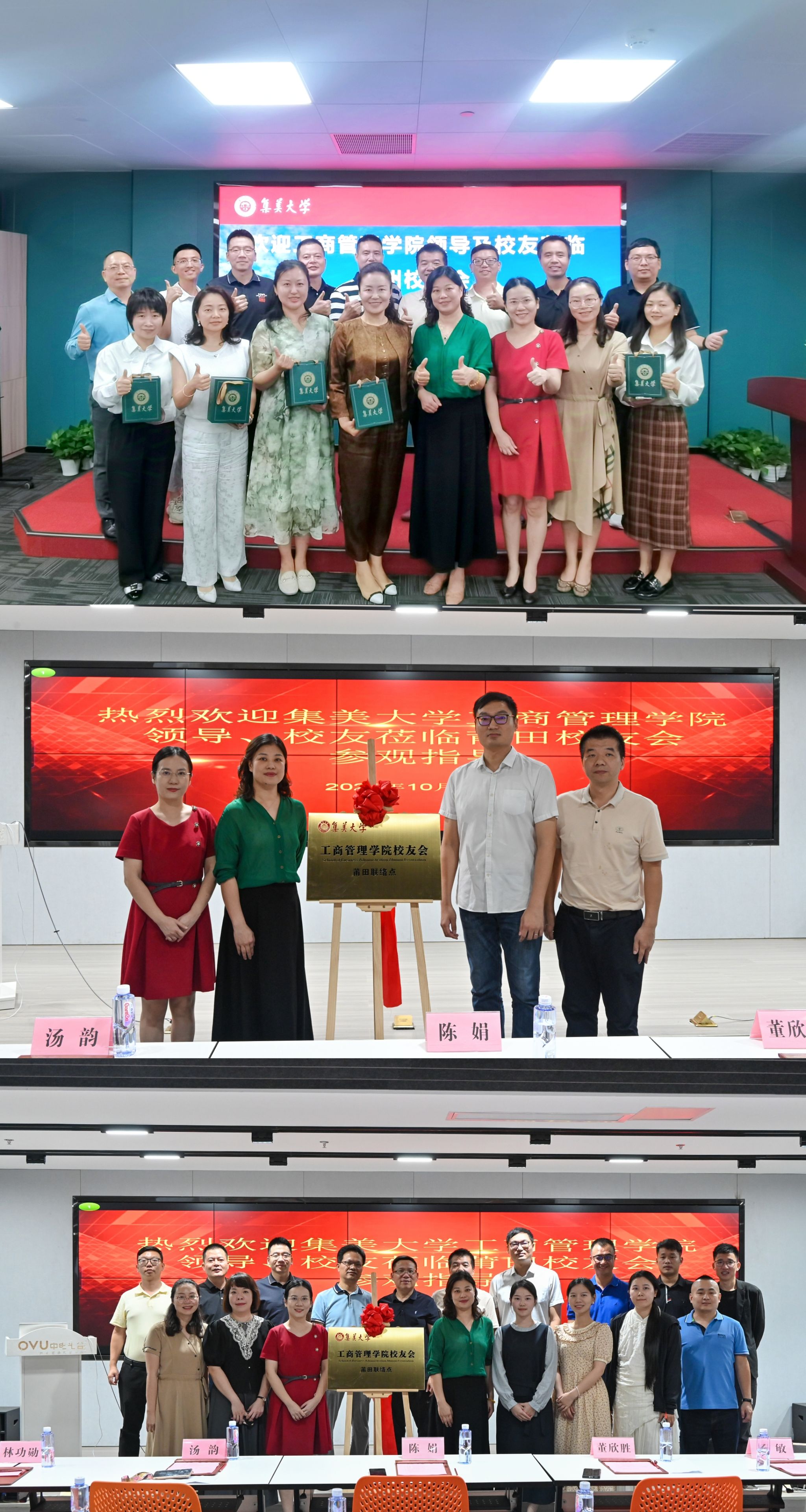 学院一行在莆田为学院校友会联络点举行揭牌仪式。院领导表示,学院校友会莆田联络点的成立将为校友们提供一个更加紧密的联系平台,促进校友之间的交流与合作。同时,院领导也简要介绍了学院目前的发展情况,着重介绍MBA项目推进情况,希望更多校友关注和支持。学院一行还参观了莆田中创慧融科技有限公司等校友企业。