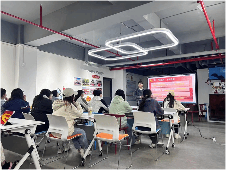 学院学科竞赛负责老师强调了学科竞赛对于学生个人成长和学院发展的重要意义,详细介绍了中国国际大学生创新大赛与“挑战杯”系列赛事的计划和安排,包括赛事时间节点、赛制规则以及学院将提供的支持和指导,建议各位同学积极参与竞赛,提高理论知识与实际应用紧密结合的能力,增强未来在职场上的竞争力。