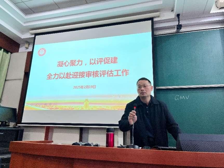 会上,吴江秋副院长全面回顾了过去一年学院在迎接本科教育教学审核评估所做的工作;深入剖析了学院在决策落实、人才培养、教风学风、迎评材料等方面存在的问题,并对下一阶段开展自查自纠、评估材料整理、强化课堂管理等工作展开部署。董欣胜副书记对学生工作进行了总结和部署,强调要加强学风建设,提升学生综合素质,为评估工作提供有力支持。江航副院长回顾了过去一年学院的科研和研究生工作,指出要以本科教育教学审核评估为契机,进一步提升科研水平和研究生培养质量。