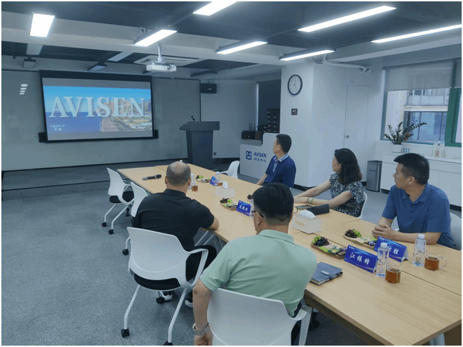 工商管理学院走访团队参观了企业办公环境及产品展示区,并介绍了学院近年来的学科建设、科研创新及学生就业情况。艾伟森国际有限公司副总裁00工商校友沈艳冰对学院来访表示热烈欢迎,并详细介绍了公司的发展历程、业务布局及未来规划。他表示,作为工商校友,始终铭记母校的培养,希望进一步加强与母校的联动,为学院提供实习就业机会,助力学院人才培养。