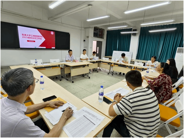 9月9日上午,集美大学工商管理学院于一站式学生社区召开 2025级本科生班主任暨师德师风座谈会,院领导、院团委、2025 级辅导员及全体新生班主任参会,院党委副书记董欣胜书记主持会议。