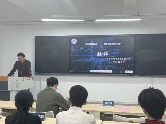 入驻评审中,各团队围绕项目创意、市场前景与落地规划进行了全面展示。经综合评议,最终八支优秀队伍脱颖而出,成功入驻本期三创工作室,它们分别是:喜又团队、情报先锋团队、CloMusic团队、11路团队、梧韵拾遗团队、米奇庙庙五团队、集盒漫游团队、匠韵时风团队。在随后的签约仪式上,学院党委副书记董欣胜代表学院向入驻团队致以热烈祝贺,并共同签署了《工商管理学院创新创业工作室入驻协议书》。
