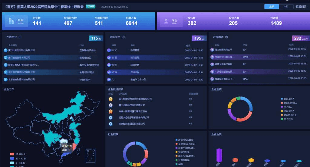 为应对疫情对毕业生就业的影响,促进毕业生更高质量就业,集美大学工商管理学院和财经学院于4月2日联合举办2020届经管类毕业生“共同战‘疫’,决胜未来”春季线上双选会。据统计,共有382名毕业生报名参会,投递简历超过1400份。