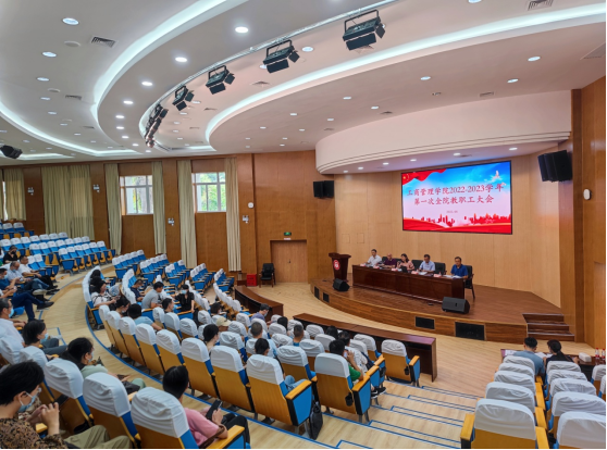 8月28日上午,工商管理学院召开全院教职工大会,部署新学期疫情防控、教学科研、学科建设、人才培养等工作。会议由学院党委书记陈娟主持。