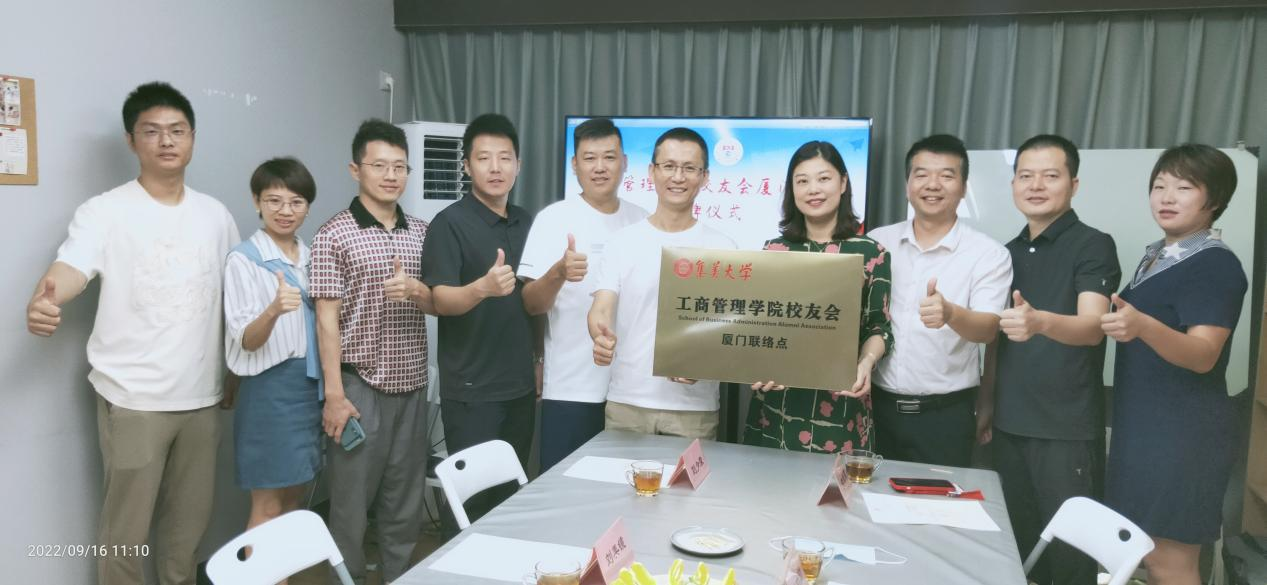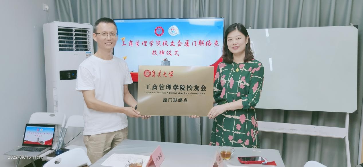 最后,举行联络点授牌仪式,由陈娟书记向集美大学工商管理学院厦门首个校友联络点授牌,联络点负责人张聪亮副会长(1995级工商管理)接牌。