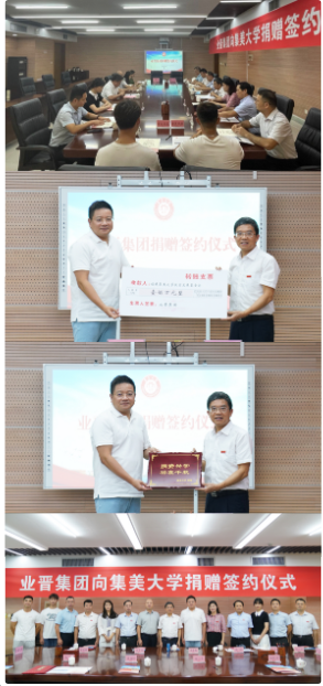 9月7日下午,我校与业晋集团有限公司签订捐赠协议。业晋集团向我校捐赠100万元,用于支持工商管理学院人才培养和学科建设。