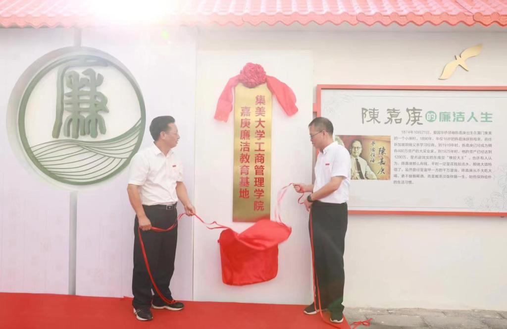 仪式上,沈灿煌和童建福共同为集美大学工商管理学院嘉庚廉洁教育基地揭牌。