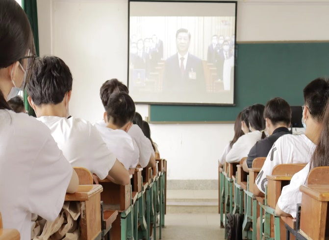 10月16日上午,中国共产党第二十次全国代表大会在北京人民大会堂开幕。习近平代表第十九届中央委员会向大会作了题为《高举中国特色社会主义伟大旗帜 为全面建设社会主义现代化国家而团结奋斗》的报告。读书社成员集中收看党的二十大开幕会实况直播,认真收听学习党的二十大报告。报告过程中,大家全神贯注,认真笔记,秩序井然。