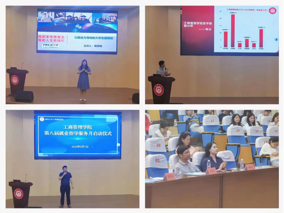 近日,工商管理学院于学术报告厅举办第八届就业指导服务月启动仪式,学院党委副书记董欣胜、全体辅导员、2020级各专业学生到场参加。