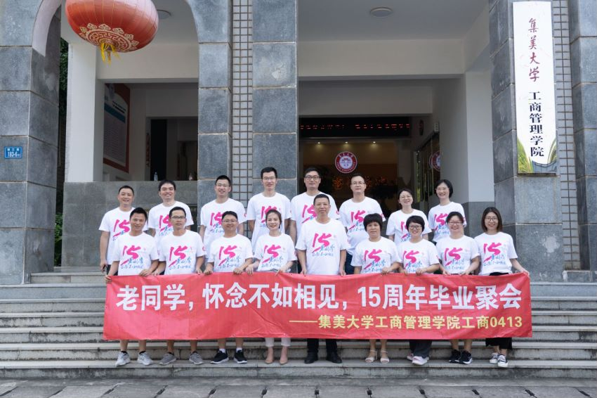 近日,工商管理学院工商管理专业0413班校友们在母校举行了十五周年聚会。这群曾经同在工商管理学院求学、逐梦、成长的校友们,怀揣着对母院的眷恋和感恩之情,再次相聚在集美大学校园,共忆求学岁月,共叙同窗情谊。