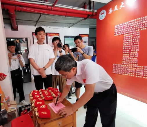 校长李清彪、校党委副书记洪文建等领导一行莅临学院报到现场,了解工作安排、报到进度、氛围布置等情况,慰问在场全体工作人员及志愿者,并与报到新生和家长们亲切交流。