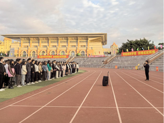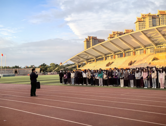 为积极落实“立德树人”根本任务,引导同学们全面学习贯彻习近平新时代中国特色社会主义思想,以更积极阳光向上的精神状态投入到学习工作生活中,工商管理学院于11月13日晨在庄重文体育场举行国旗下讲话,学院党委副书记董欣胜、全体辅导员和学院同学们参加。