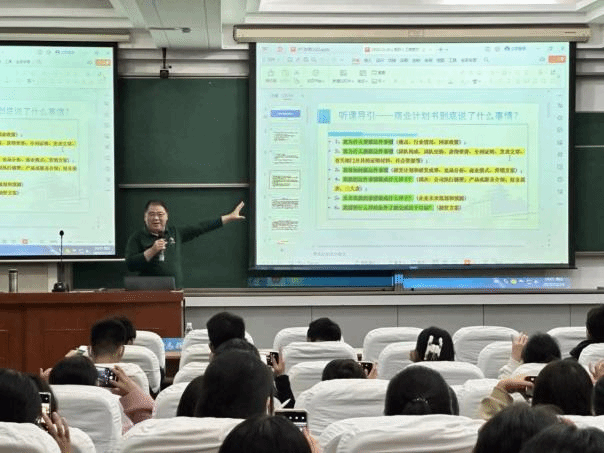 本次讲座邀请到“挑战杯”中国大学生创业计划竞赛国赛金奖指导老师、校创新创业中心孵化与赛事部主任谢志辉老师作为主讲嘉宾。活动伊始,谢志辉老师以大学生如何学习为切入点,提出大学生应形成模式化、工具化学习体系,系统介绍了商业计划书的构成、具体内容与注意事项,并分享了相关获奖案例的商业计划书以启发学生的思维,勉励学生开拓创意思维、勇于创新创业,预祝各团队在该赛事取得优良成绩。