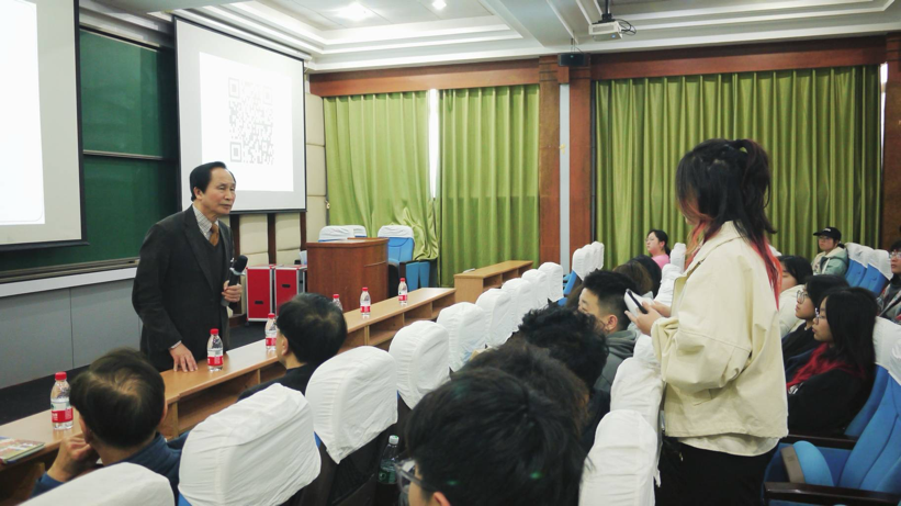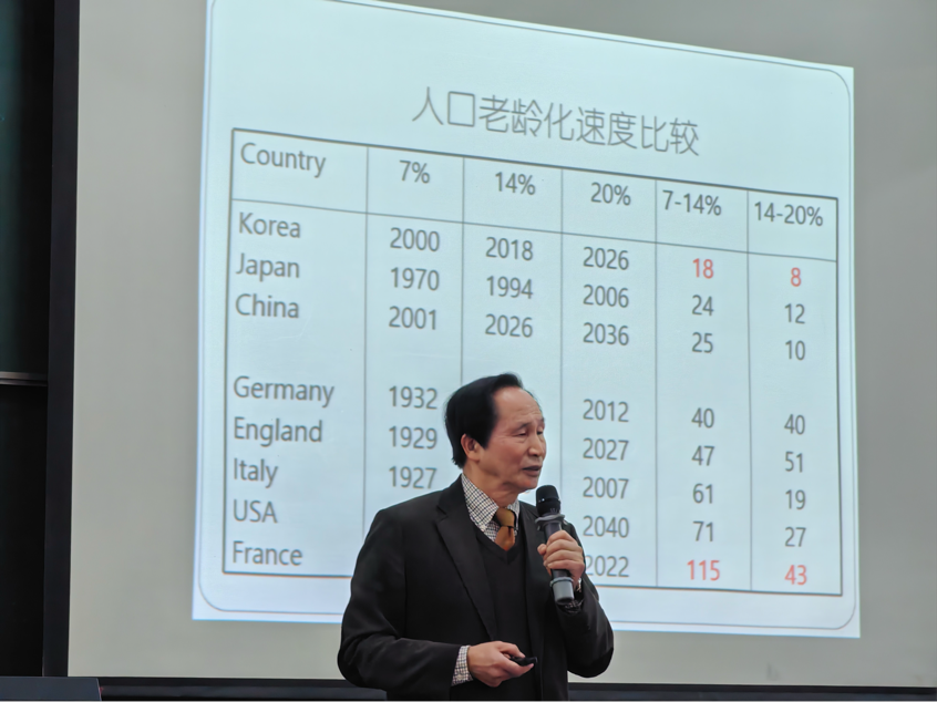 讲座围绕人口老龄化和平均寿命延长、老年人医疗费用增加、老年人福利现状、森林治愈、老年人福利和森林治愈的融合政策五个方面展开。金益基教授通过数据展现中日韩人口老龄化和平均寿命延长的社会现象,通过实例分析老年人福利现状,指出老年人医疗费用的增加对国家财政和社会产生的压力,提出“森林治愈”概念。他通过研究森林环境对老年人健康的影响,验证了抗老化森林治愈标准程序的效果,提出将老年人福利与森林治愈融合的策略,帮助老年人延长健康寿命,提升生活幸福感。会后,金益基教授细心解答了同学们提出的问题。