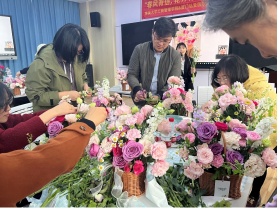 随后举行的DIY插花活动中现场邀请了专业花艺师为教职工们讲解插花的基本技巧,从花卉的选择、颜色的搭配、花枝的修剪以及如何错落有致地插满花篮等方面开展讲解,并现场展示插花造型。教职工们充分发挥自己的想象力和创作力,通过修剪、创意、搭配等步骤制作出“私人订制”的花艺作品,并互相分享了对插花艺术的理解和感受,在“与花共舞”中学习了插花技艺、陶冶了生活情操。