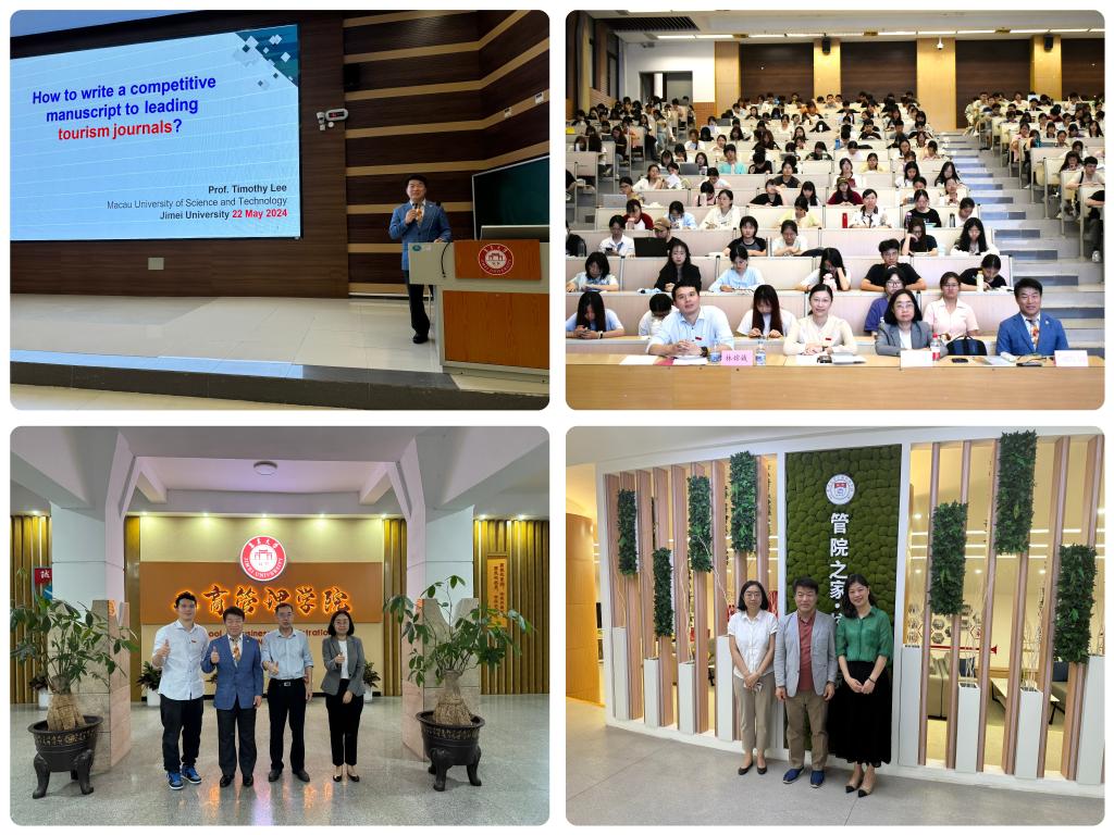 为提升我院师生科研能力,丰富科研成果,提高项目申报与论文发表质量,5月22日下午,工商管理学院举办 题为“What you shouldn't miss before submitting a paper to SSCI journals?”的学术讲座。讲座由澳门科技大学酒店与旅游管理学院副院长,International Journal of Tourism Research(国际旅游研究期刊)主编Prof. Timothy Lee主讲。集美大学科研处副处长林嫦娥主持会议,全校近500名师生参与本次讲座。